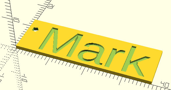 shape = cube(length, 12, 1) - text(text=name).translate(5, 1, 1)